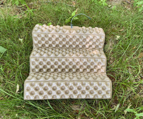 Beim Wandern eine extra Sitzunterlage mitzunehmen war uns bislang zu umständlich, da zu sperrig. Auch der Versuch mit einer ausgedienten, passend zugeschnittenen, dünnen Isomatte hat uns nie ganz überzeugt. Gerade wenn der Untergrund steinig war, war uns die Isomatte zu dünn um bequem darauf zu sitzen, oder sie bekam relativ schnell Löcher. Deshalb haben wir diese Versuche bald beendet und meist einfach ein Kleidungsstück, etwa eine Regenhose oder ein Fleece, als Sitzunterlage verwendet.